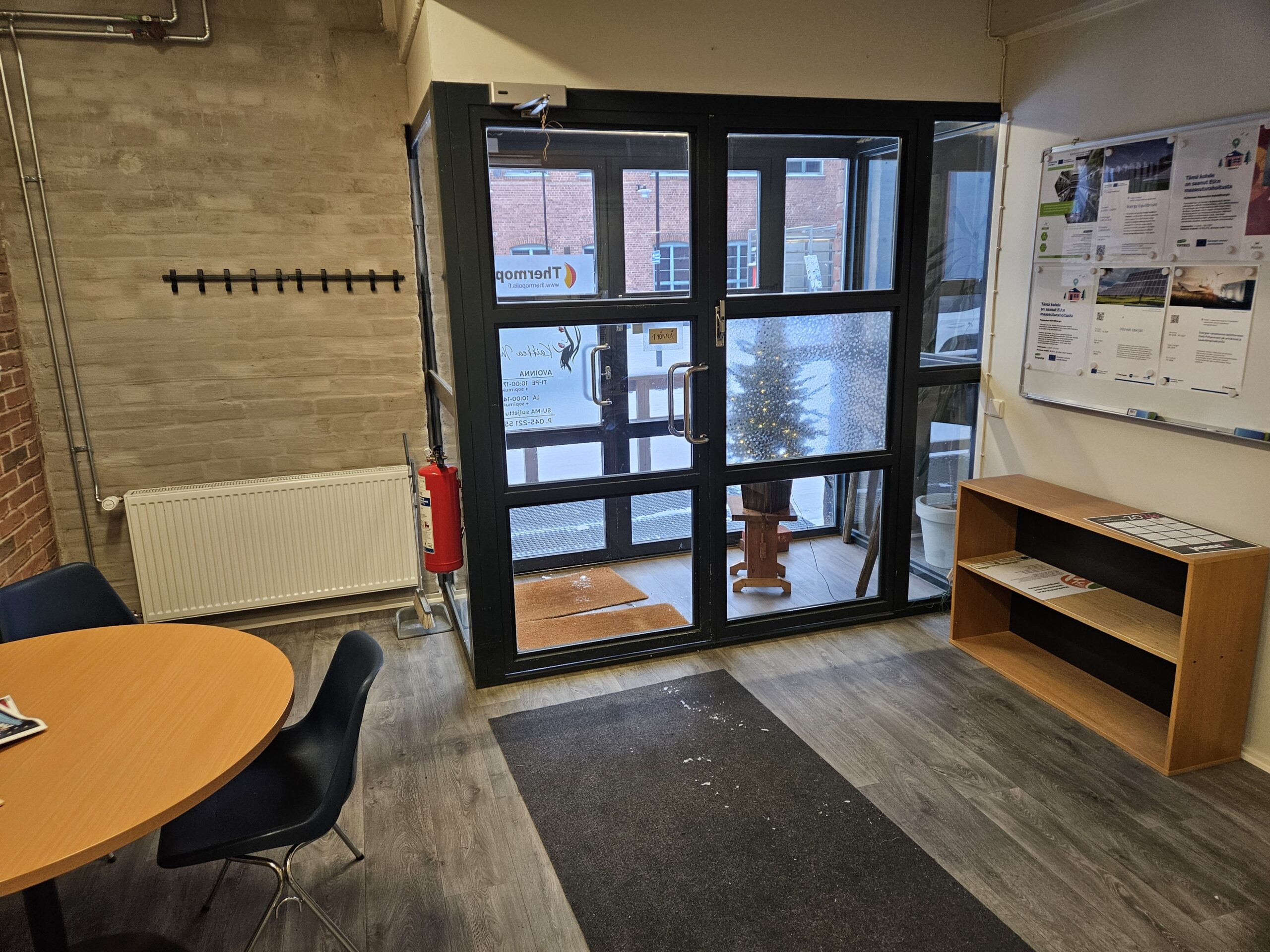 Makasiini rakennuksen ensimmäisessä kerroksesa loistava tila asiakaspalveluun tai toimistoksi. Tiloissa on yhteinen eteinen / odotustila ja yhteinen taukotila ja wc.